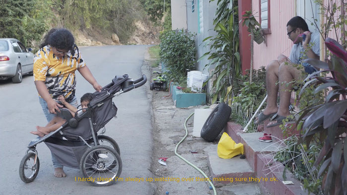 After both of their homes were severely damaged, the Pachecho family began living in a makeshift-home made from blue tarps and donated wood.